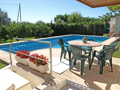 avec orangers, pins, pelouse,